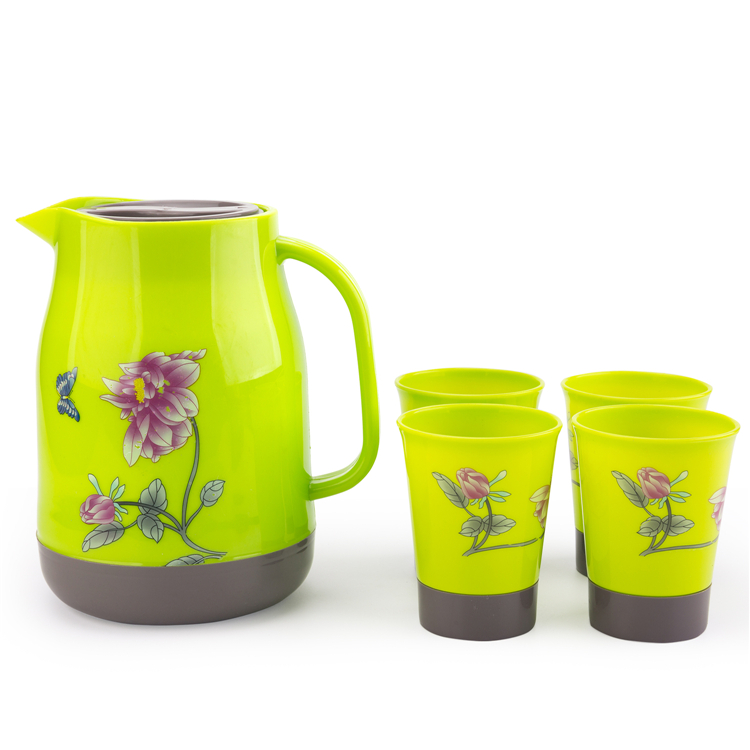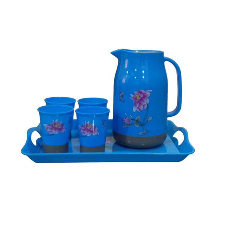 It comes with a tray and 4 matching cups, making it perfect for families, kids, and guests.